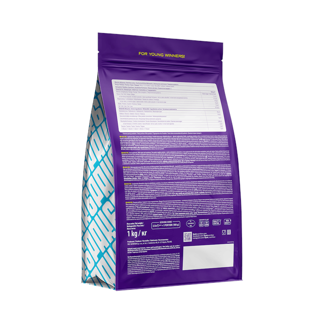 Suplement diety. Zawiera cukry i substancję słodzącą. Produkt dostarczający składniki odżywcze – głównie węglowodany i białka, uzupełniający dodatkowo dietę w monohydrat kreatyny, taurynę i L-glicynę. Białka przyczyniają się do wzrostu i utrzymania masy mięśniowej, ich spożywanie wspiera budowę masy mięśniowej, a także pośrednio wspomaga regenerację mięśni po treningu. Dodatkowo białka pomagają w utrzymaniu zdrowych kości. Produkt jest idealną propozycją dla osób wyczynowo uprawiających różne dyscypliny sportu, szczególnie zalecany jako uzupełnienie diety podczas treningów siłowych, wytrzymałościowych i wydolnościowych.