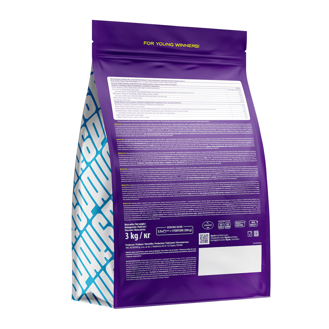 Suplement diety. Zawiera cukry i substancję słodzącą. Produkt dostarczający składniki odżywcze – głównie węglowodany i białka, uzupełniający dodatkowo dietę w monohydrat kreatyny, taurynę i L-glicynę. Białka przyczyniają się do wzrostu i utrzymania masy mięśniowej, ich spożywanie wspiera budowę masy mięśniowej, a także pośrednio wspomaga regenerację mięśni po treningu. Dodatkowo białka pomagają w utrzymaniu zdrowych kości. Produkt jest idealną propozycją dla osób wyczynowo uprawiających różne dyscypliny sportu, szczególnie zalecany jako uzupełnienie diety podczas treningów siłowych, wytrzymałościowych i wydolnościowych.
