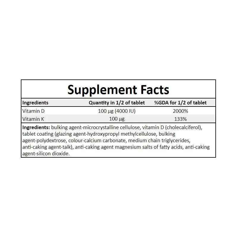 Systematyczne przyjmowanie suplementów jest ważne dla Twojego rozwoju, zwłaszcza jeśli regularnie trenujesz. Suplement diety D3 + K2 to doskonałe połączenie składników, które razem wykazują najlepsze działanie. Witamina K2 bez połączenia jej z witaminą D3, praktycznie nie przynosi żadnych korzyści. Ich głównym zadanie jest regulowanie aktywności wapnia i dbanie o silne kości. Bez odpowiedniej ilości K2 i D3, wapń nie jest przyswajany prawidłowo. Witamina D3 zapewnia jego lepszą wchłanialność, a witamina K2 kieruje go do kości i zębów, dzięki czemu nie odkłada się w naczyniach krwionośnych.