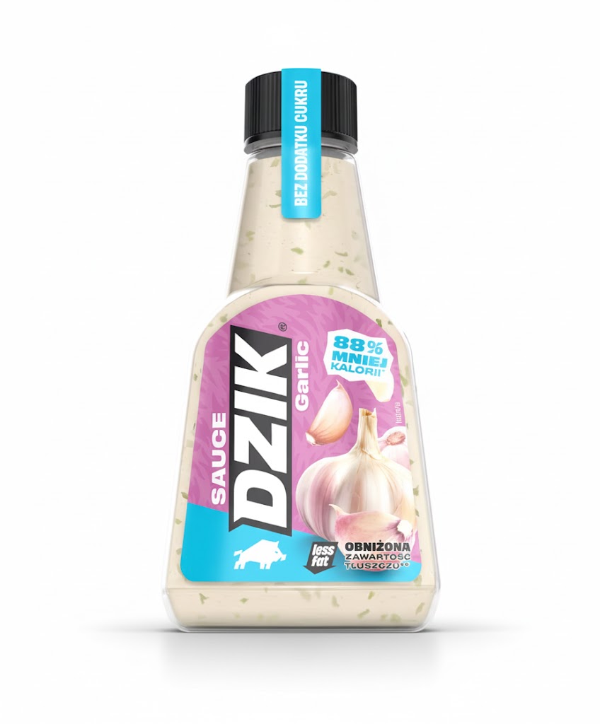 Sos czosnkowy DZIK® to doskonały, intensywny smak i aż 88% mniej kalorii w porównaniu do innych sosów czosnkowych.