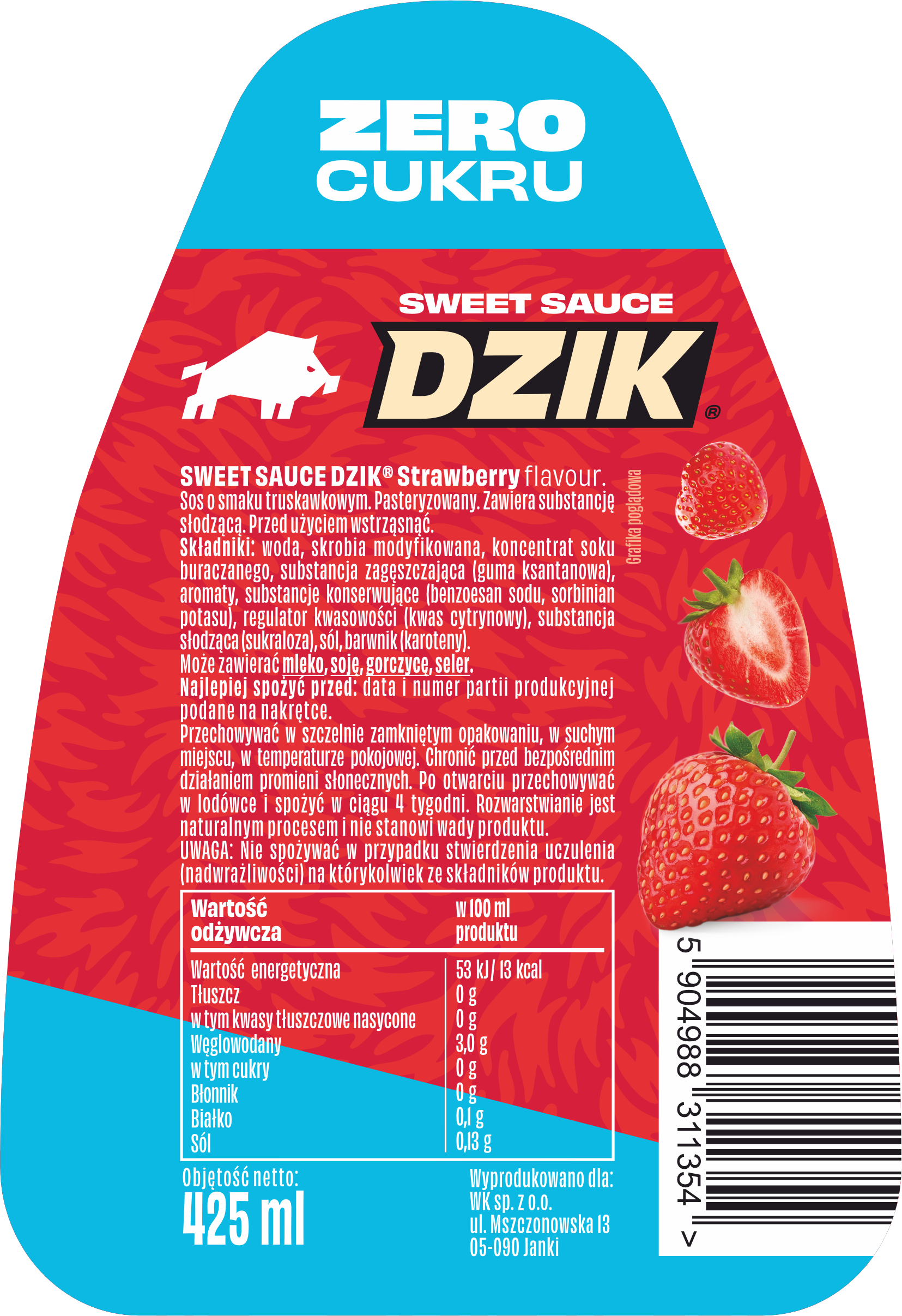 WK DZIK Sos Zero – Truskawka – 425ml