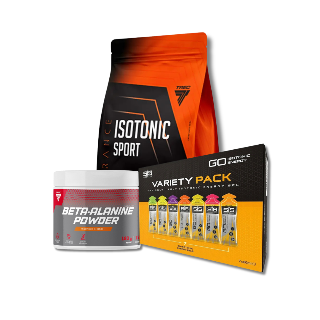 Zestaw Runner to gotowy pakiet dla każdego, kto biega, startuje w zawodach, trenuje długodystansowo albo potrzebuje solidnego wsparcia energetycznego podczas aktywności. Idealny na treningi, maratony, zawody OCR, rower czy intensywne sesje cardio.